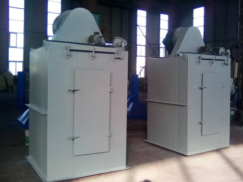 含塵氣體由進氣口進入灰斗或儲灰箱,通過花板孔或直接通過花板孔三種方式進入濾袋。含塵氣體透過濾袋變?yōu)閮魵?,進入箱體,再經(jīng)箱體上部排氣口,由風機排走。粉塵積附在濾袋的內(nèi)表面,且不斷增加,使袋收塵器的阻力不斷上升。當阻力上升到1500—2000Pa時為了使袋收塵器繼續(xù)工作,需定期濾袋上的粉塵。具體清灰時, 先關(guān)閉頂上風機,搖動電機上偏心作用,帶動連桿,使搖動軸左右來回轉(zhuǎn)動,濾袋就呈波紋狀態(tài),使粉塵掉下,卸出。